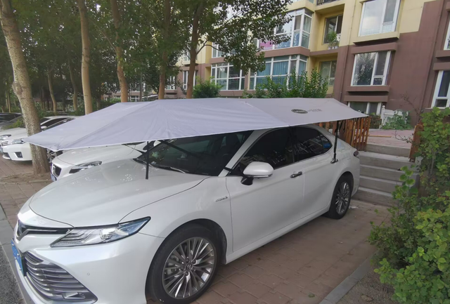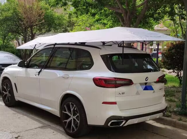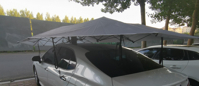 It is strong and durable, with fine workmanship and solid materials. I bought a 4.6m one, which can cover the car well from the sun and the rain. It has not been blown over, and the quality is very strong