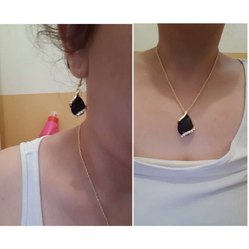 - Features: Jewelry Set, Crystal Drop Necklace, Crystal Drop Earrings, Crystal Jewelry Set, Black Jewelry Set