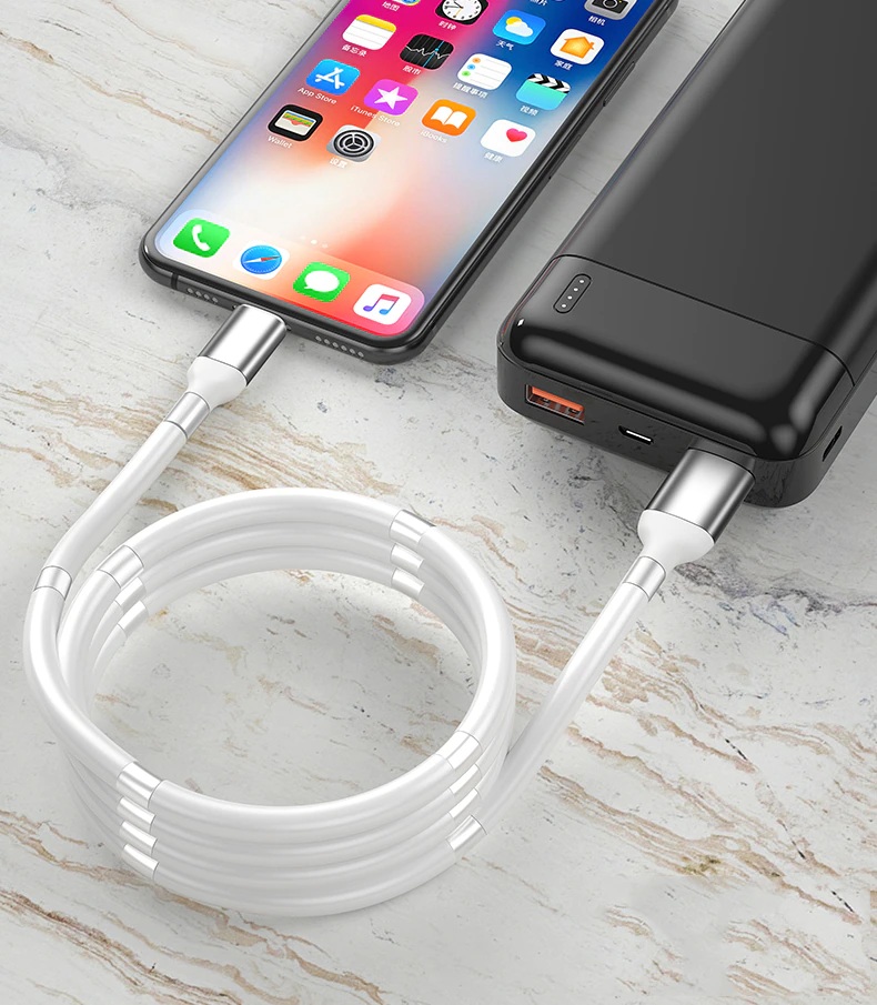 Ordinary charging cables create messy wire clutter and take up limited tabletop and desktop space while shorter cables are impractical. The Magnetic Charging Cable combines the best both, giving you convenient cable length while being compact and neat.