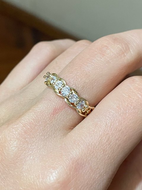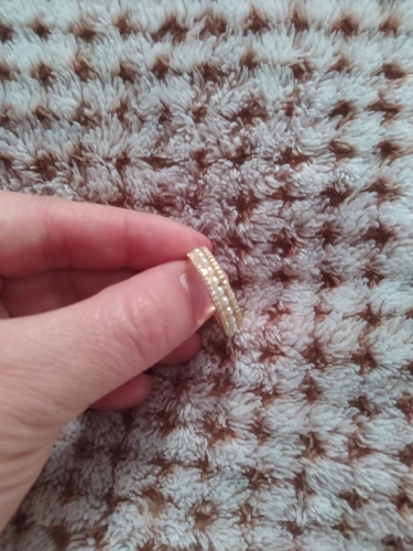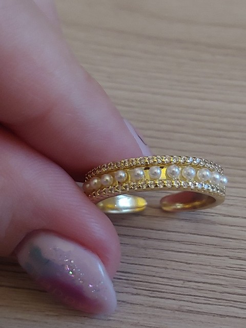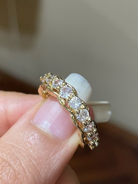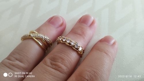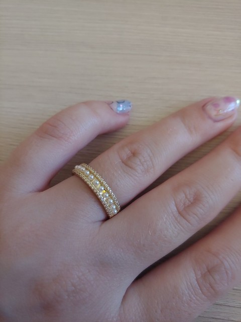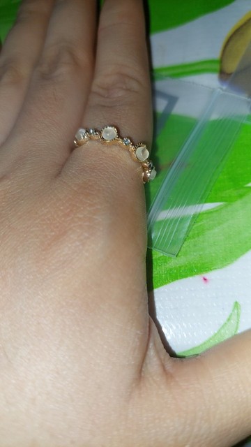 Very cute ring, it shines very nice, I arrive identical to the photo, I hope with the use it will not get stained. Apparently it looks good stuff. I like it very much since it looks very elegant. Do not contact the store.