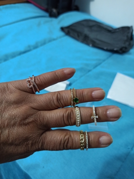 I quite loved the ring in the last photo, 100% highly recommended, those who are not so much the set that has the white ring, feel quite chafas haha, In the others they are all pretty, size 6 some size 7-8, I left something big especially spiral ones, but if I recommend for thin fingers like mine <3