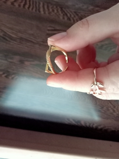 Corresponds to the description. Shipping fast. It came complete with other orders. In general, the ring is cute, it is convenient that the size can be adjusted. On the day-to-day does not fit, after a week of socks, on the inside, the coating began to slowly go.