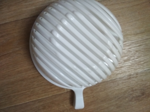 The bowl can be used as a strainer, with which you can wash your lettuce together, the pedestal can be used as a cut board. Just set them up for a perfect cross-cutting. Spin the strainer and slice your fruit or vegetable smaller.