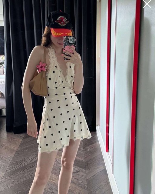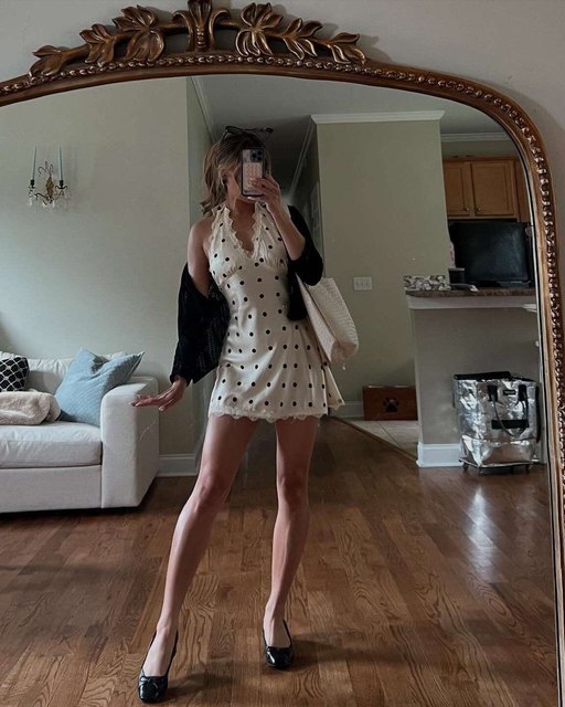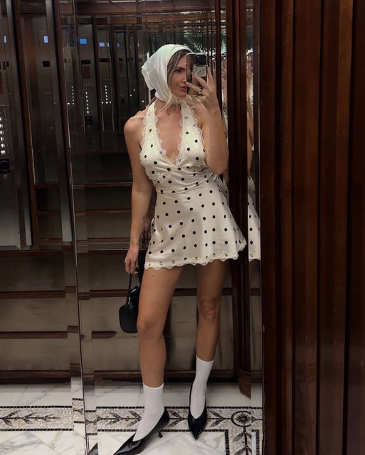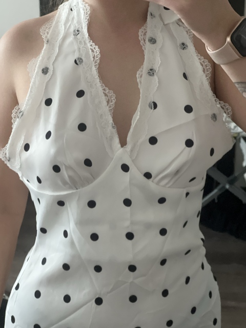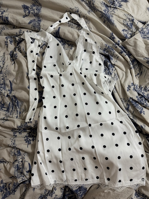 Step into summer with this playful yet elegant Polka Dot Mini Dress. Crafted from soft, lightweight fabric, it features a square neckline and halter-style straps that beautifully accentuate your shoulders. The fitted bodice flows into a voluminous, bubble-style skirt, creating a flattering, vintage-inspired A-line silhouette. A shirred back panel and lace-up detail ensure a snug, comfortable fit. Perfect for brunches, beachside walks, or casual date nights, this dress embraces the timeless charm of polka dots with a modern twist.