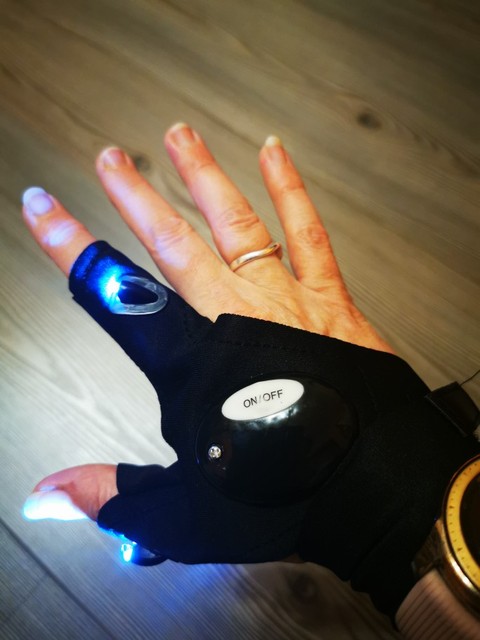 So I got these for my husband for 🎣 fishing. He tries them on and toys with them for a few minutes. He really likes them. Later I catch him aggravateing Dog in the dark with the lights off lol. He takes them to work, and uses them that week, all the guys there seemed to like them as well. Especially since they work with tedious small components and the led lights on gloves are awesome. I am going to have to order back up lol. I had ordered left glove and right glove for him the pair.