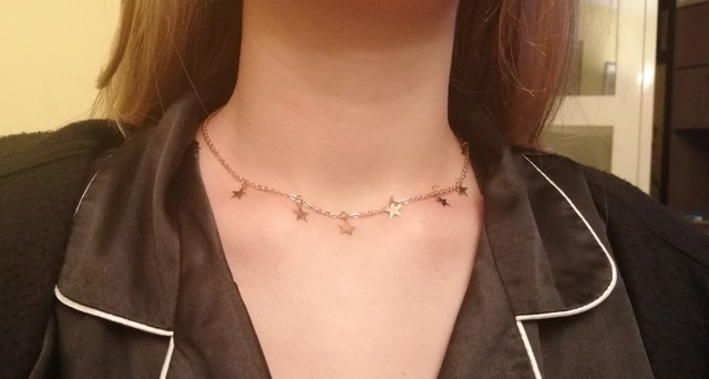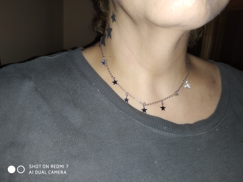 Buy not really track over the “Arrived in the destination country”. Product thrown into the box. Packed in bag pupyrkoy inside a plastic small bag for jewelry. Most jewelry lovely, bright shiny silver. Looks pretty good on the neck. Do not recommend wearing something woolen or any other tissues, which can easily catch (stars pretty sharp and thin). Believe this decoration perfect for summer. Do not use it, Pro darkening over time can not say anything, maybe add review later. Seller, thanks a lot!