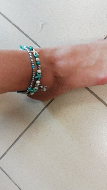 The bracelet is beautiful, but one thread is much shorter than the other, because of this, the bracelet has to be pulled. It would look more beautiful if both threads were the same in length. Suitable for a thin leg. With the store did not communicate, there was no need.